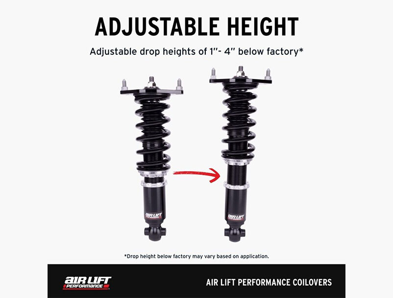 Bring precision adjustability, aggressive stance and future-proof performance to your Mustang with the Air Lift Performance Coilover Kit (P/N 79007). Whether daily driving or building a show car, this bolt-on suspension system sets you up now—and gives you the option to upgrade to full air suspension when you’re ready.
